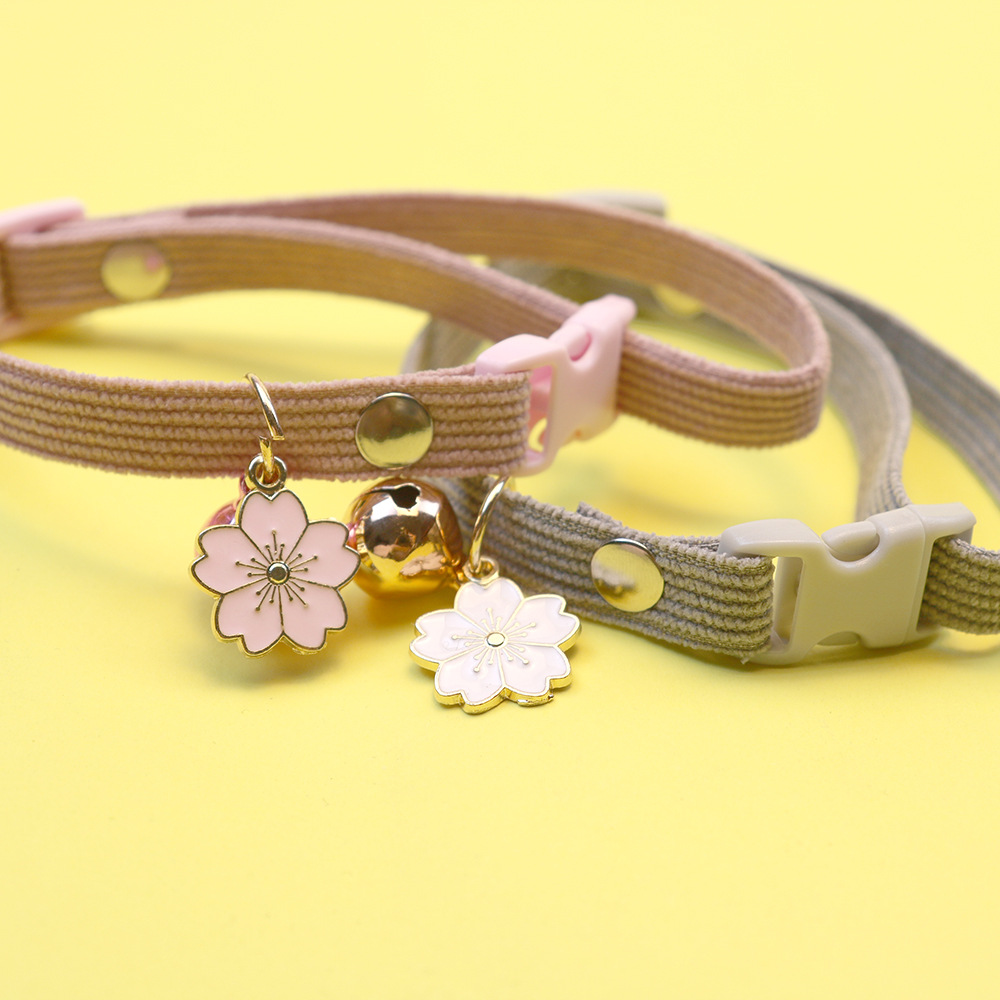 犬の鈴付きの首輪おすすめ・桜モチーフのコーデュロイで愛犬の居場所がすぐ分かり迷子防止や安全確認に役立つ和風デザイン