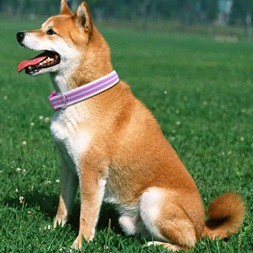 大型犬におすすめの可愛いストライプ柄ワンタッチバックル太め首輪、しっかりした作りで安全性も高くデザイン性にも優れている
