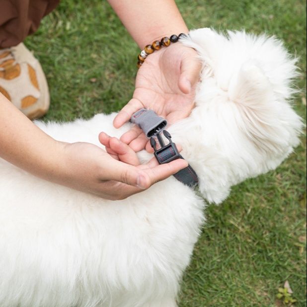 ワンタッチで着脱できるバックル式で、毎日のお散歩も快適にお楽しみいただけます。