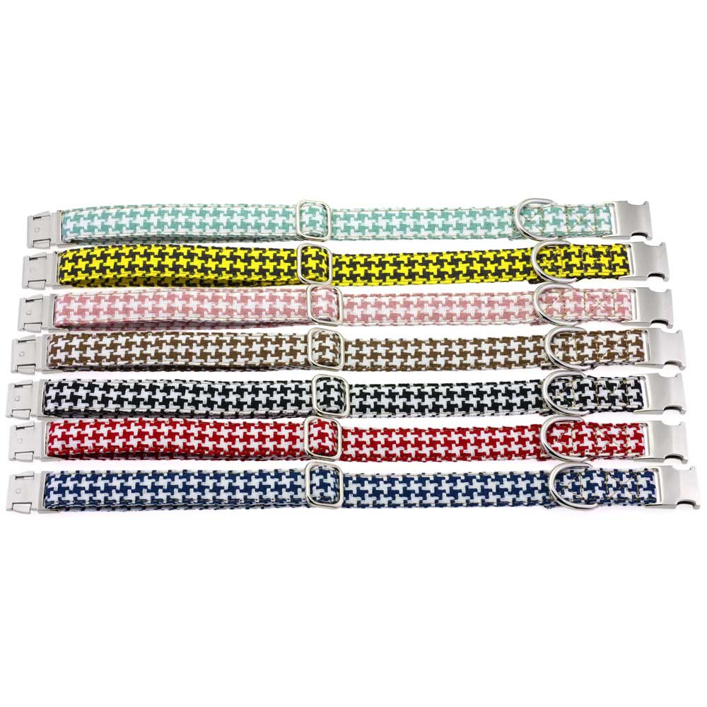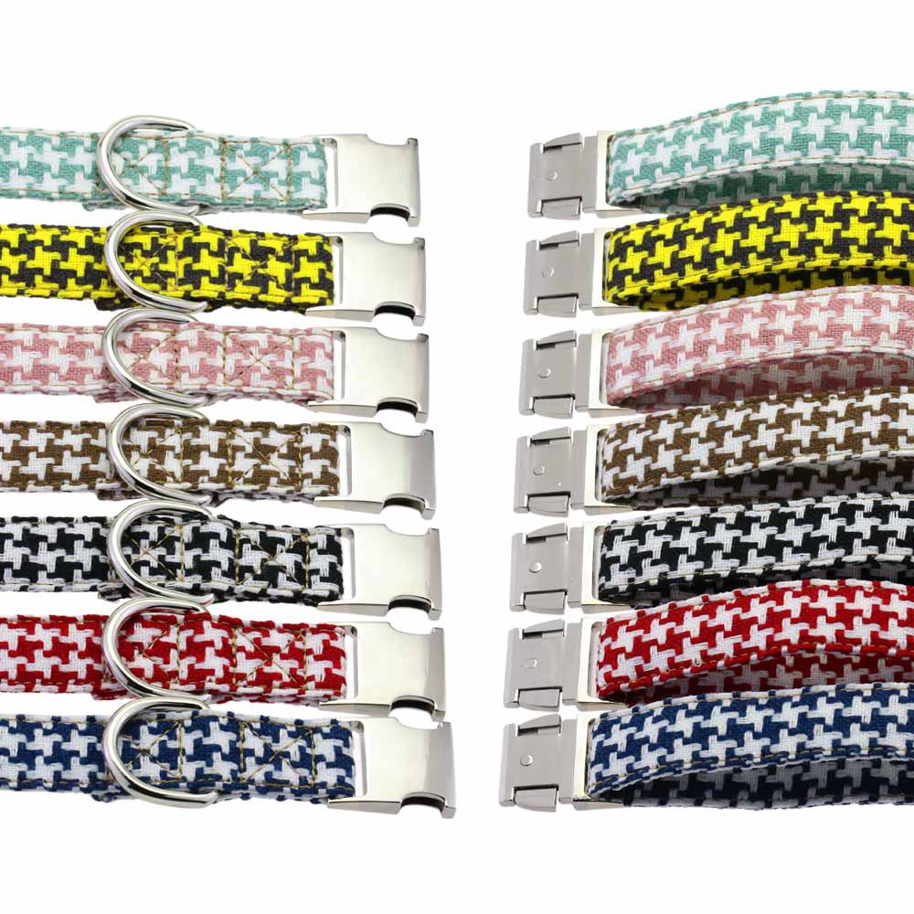 上品な千鳥格子模様が美しい軽い犬首輪です。