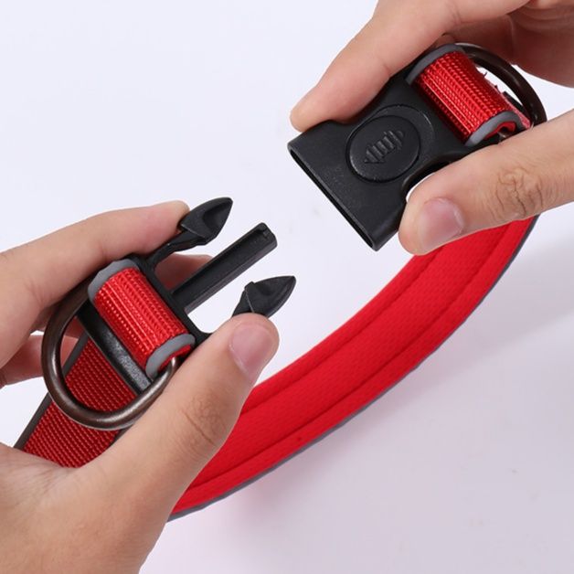 小型犬から中型犬まで幅広くお使いいただける調節可能な犬首輪となっています。