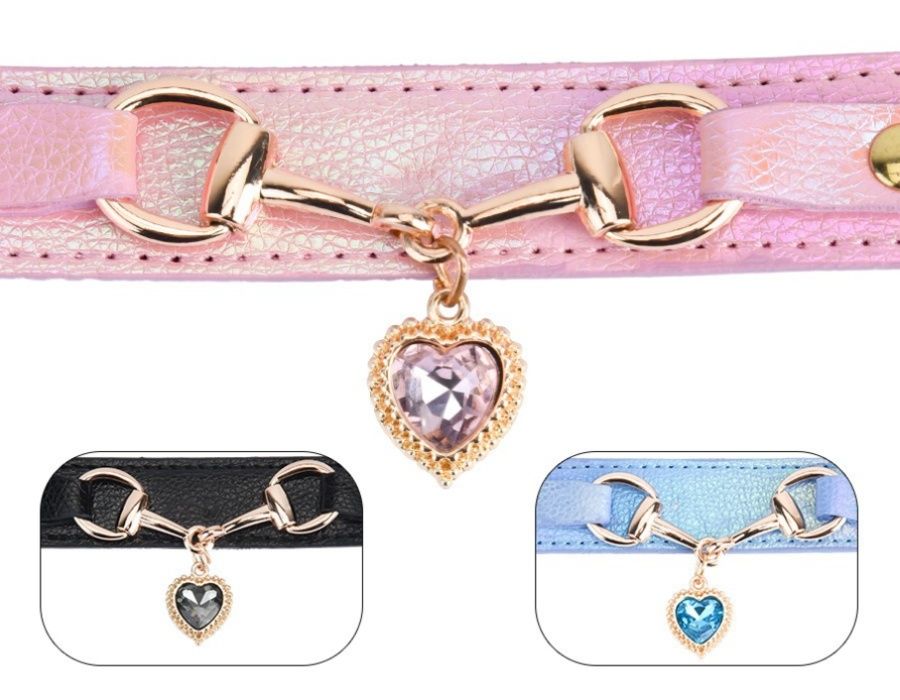 愛らしいハート型の宝石チャームが揺れる上品な犬首輪です。