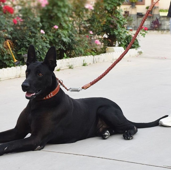 リードは丈夫な編み込みデザインで、大型犬の散歩にも安心してお使いいただけます。