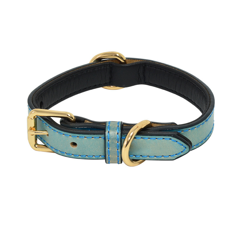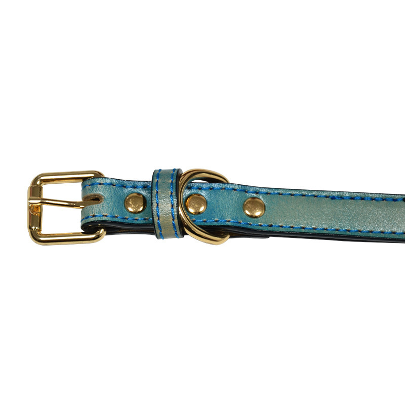 表面には美しい質感の革を使用し、裏面は柔らかな革で愛犬の首元を優しく守ります。