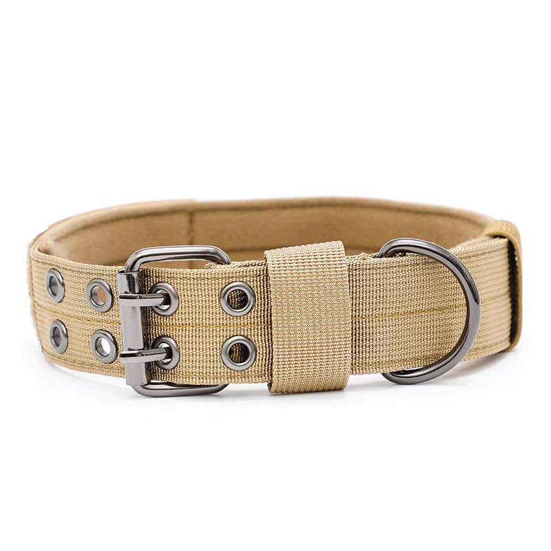厚手のナイロン素材と発泡綿を使用し、愛犬の首への負担を軽減します。