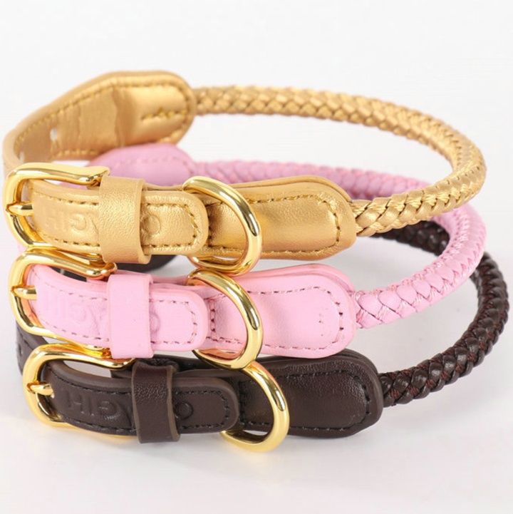 首輪部分は丁寧な編み込み加工が施され、愛犬の首元を優しく包み込みます。