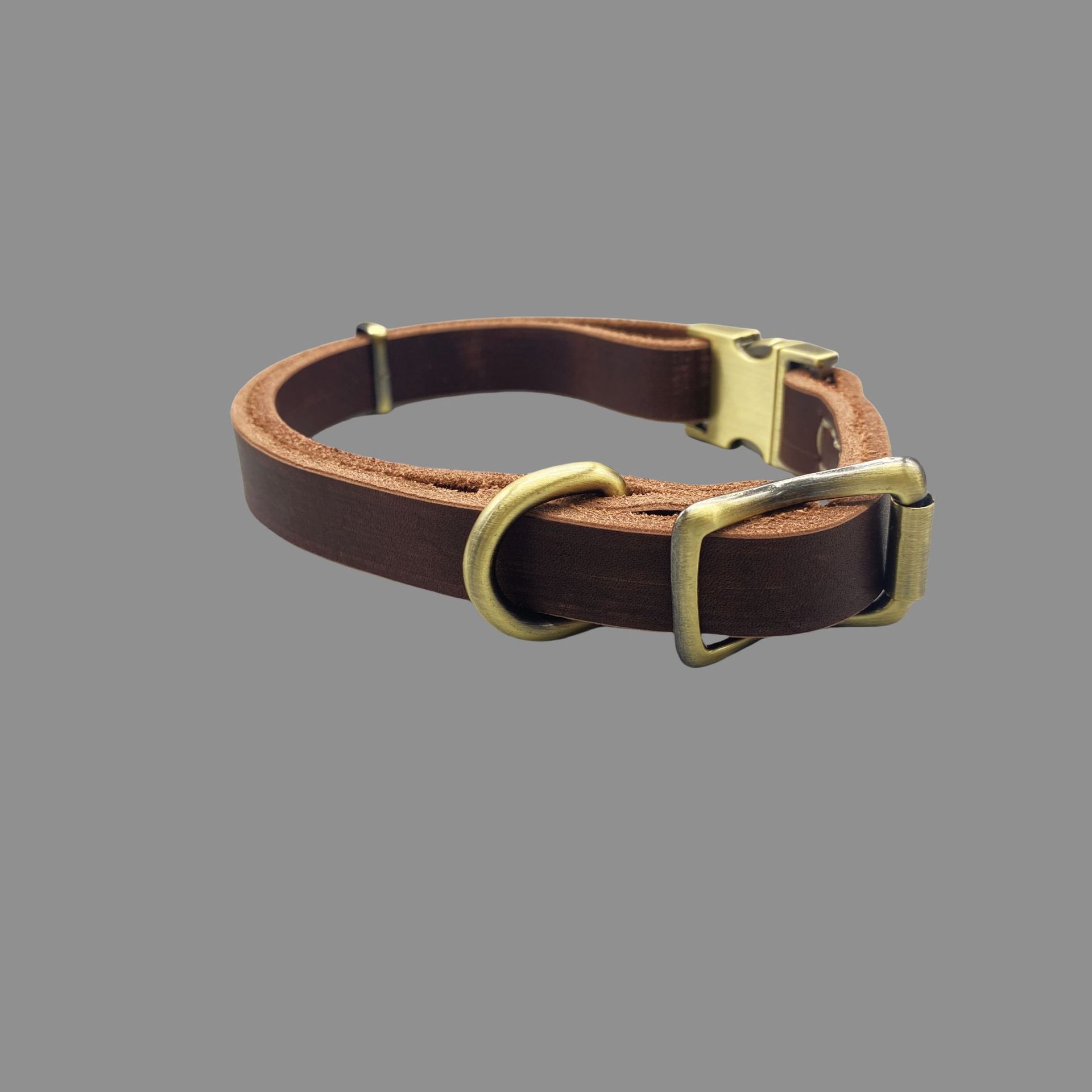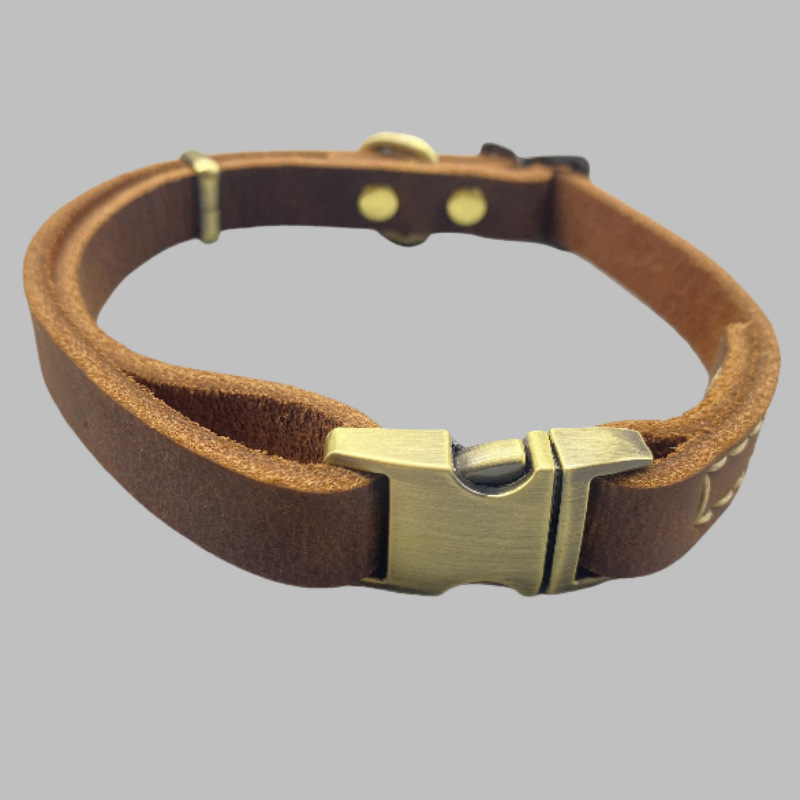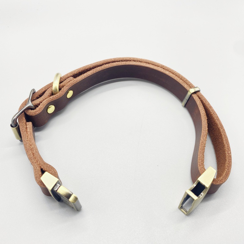 上質な本牛革を使用した犬首輪です。革の質感を生かした二重構造で耐久性に優れ、長くご愛用いただけます。