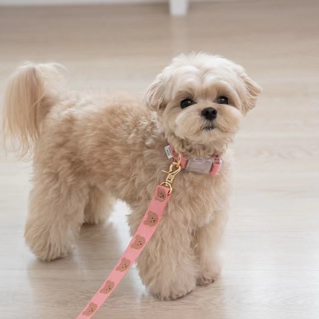 愛らしいくまの顔がプリントされた犬首輪とリードセットです。