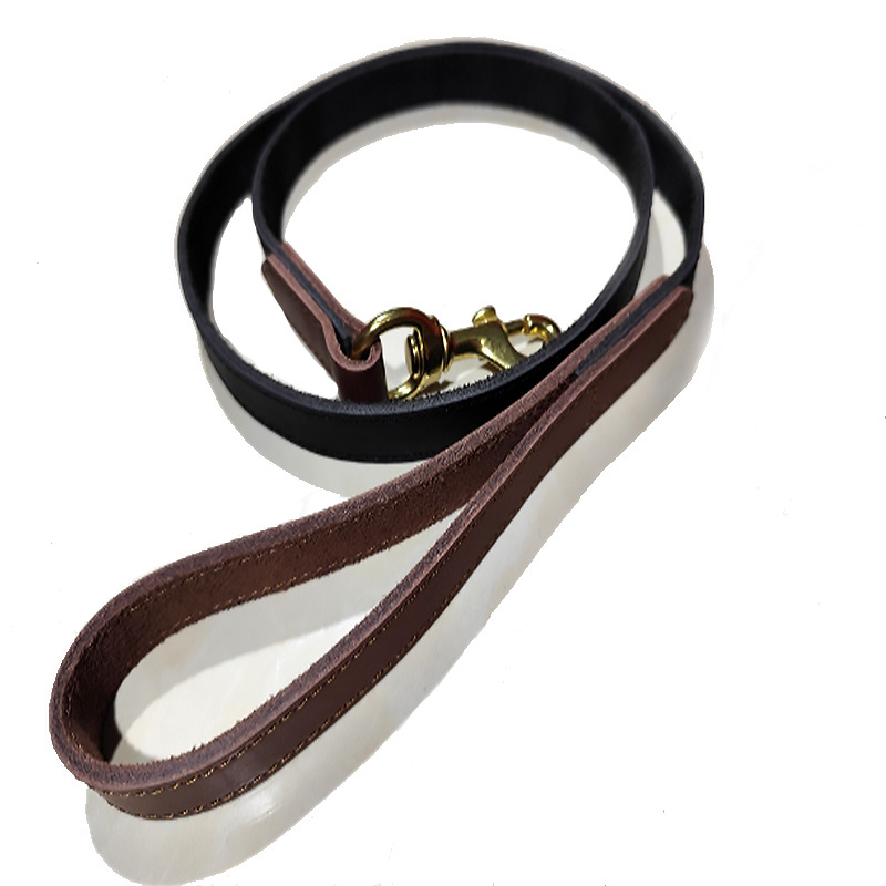 丁寧な手縫いステッチが施された革製リードは耐久性に優れ、使い込むほどに手に馴染む質感が魅力です。