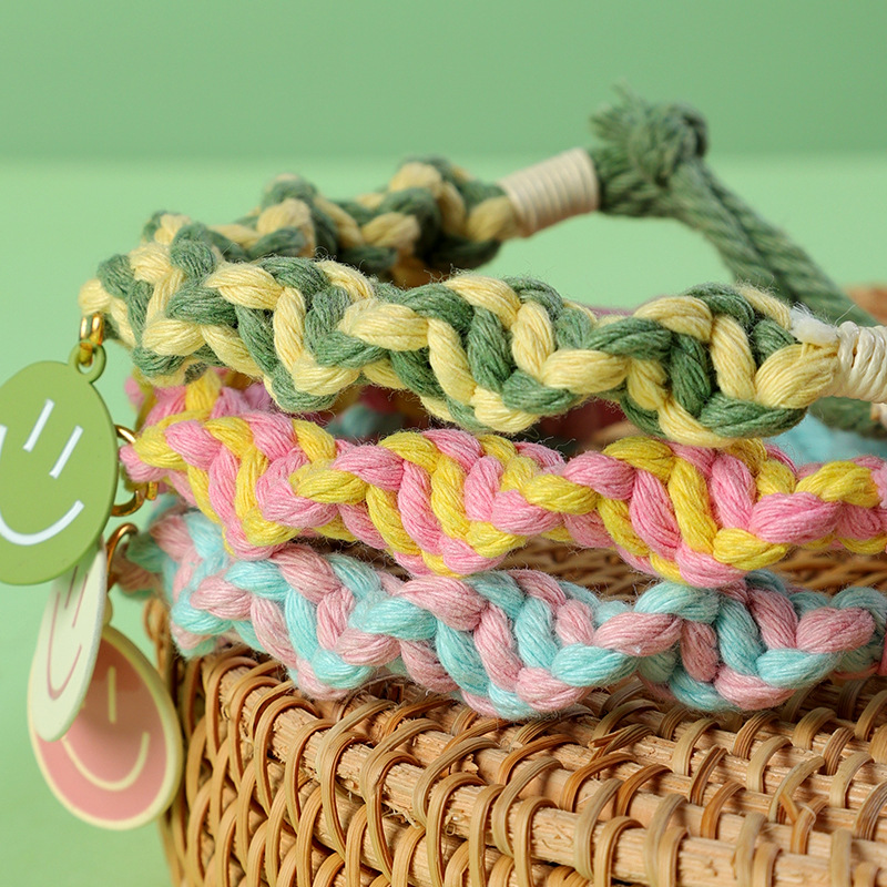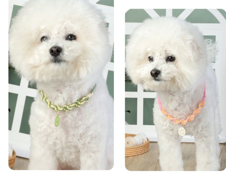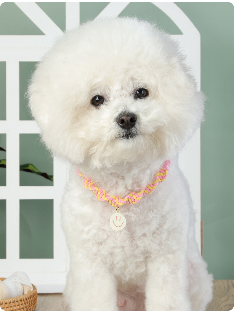 可愛らしい編み込みデザインが特徴的な小型犬用の犬首輪です。