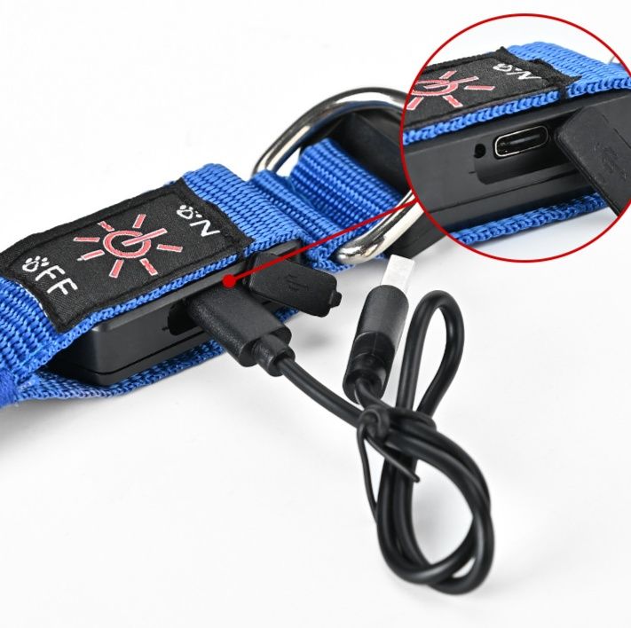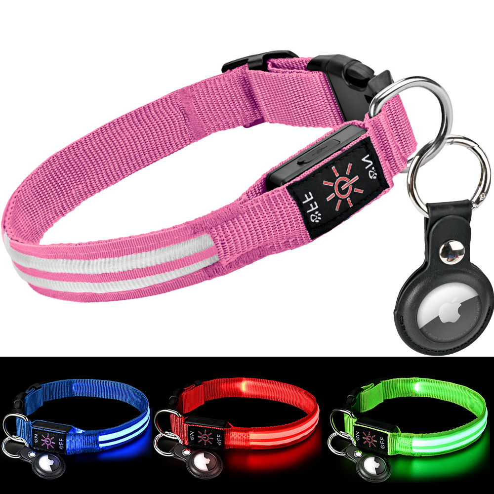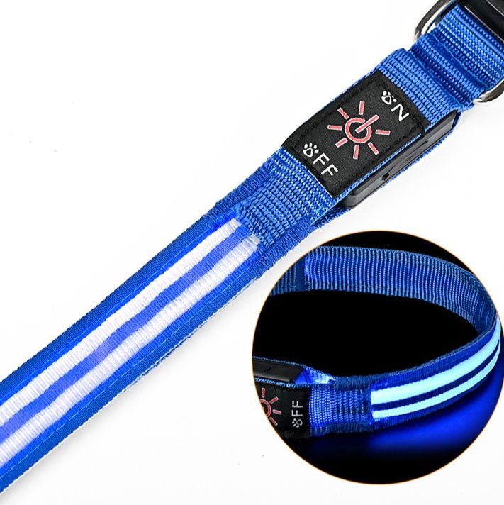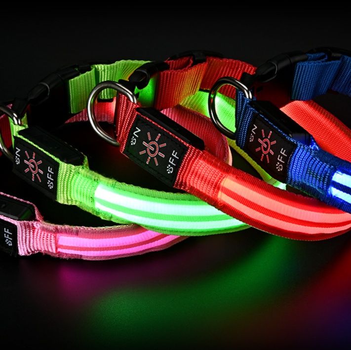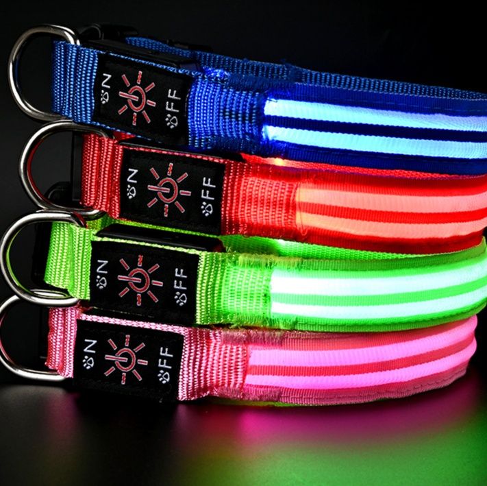 夜間の散歩も安心な発光機能を備えた軽い犬首輪です。