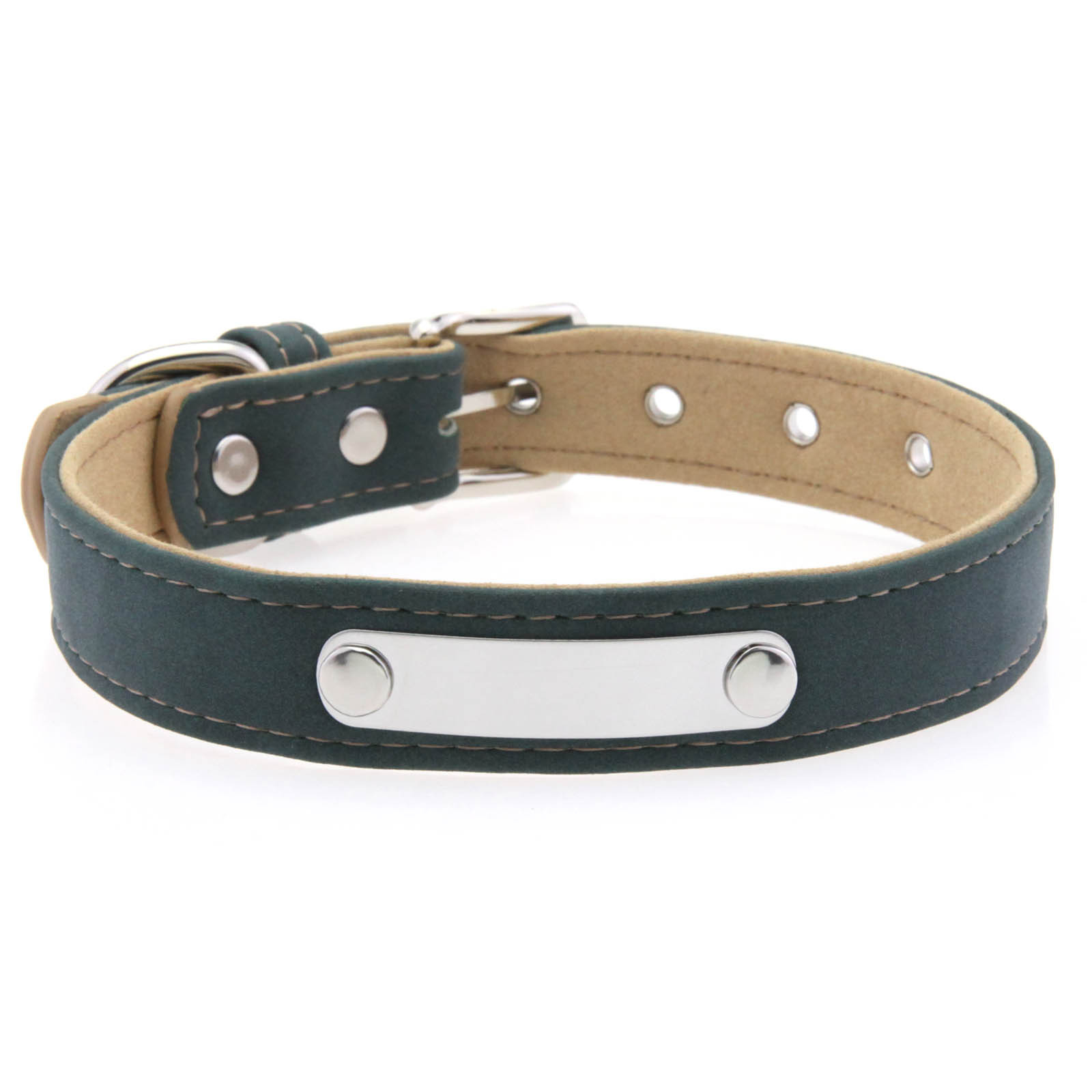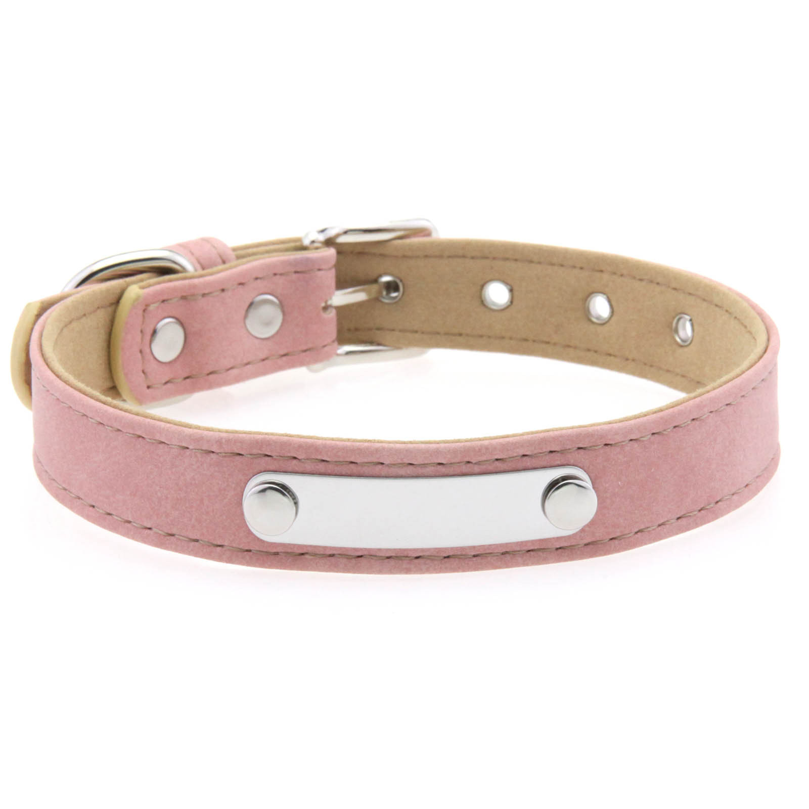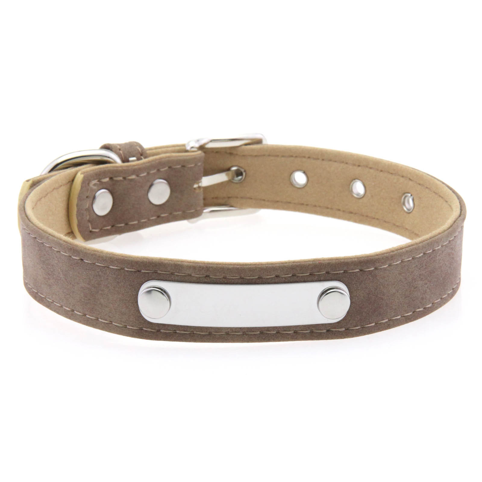 中央に配置された金属プレートが洗練された印象を与え、愛犬の首元を上品に演出します。