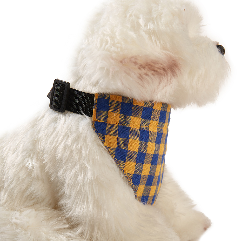 可愛らしい格子柄が魅力的な三角巾スタイルの犬首輪バンダナです。