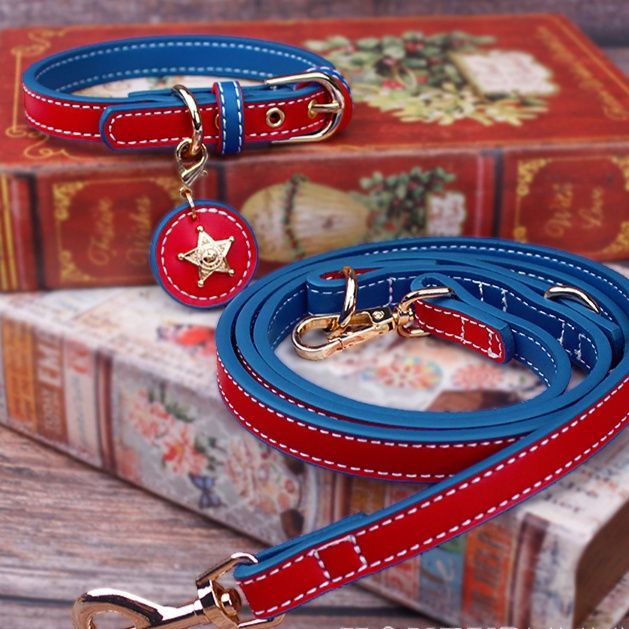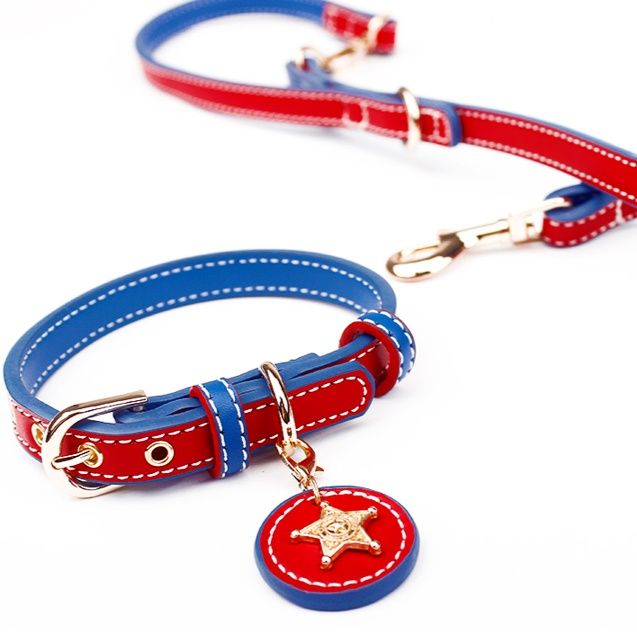 愛犬の首に優しい軽い素材を使用した犬首輪とリードのセットです。