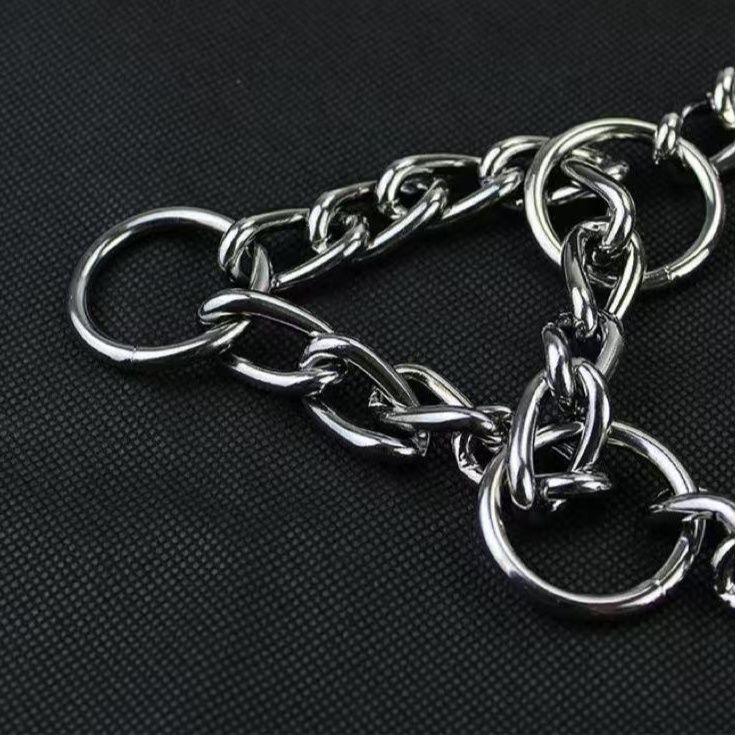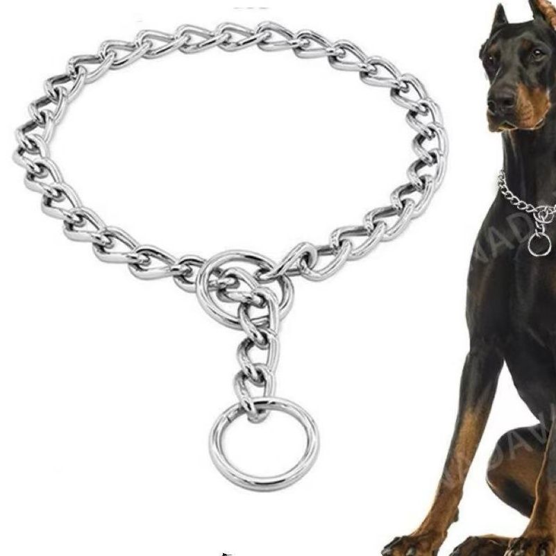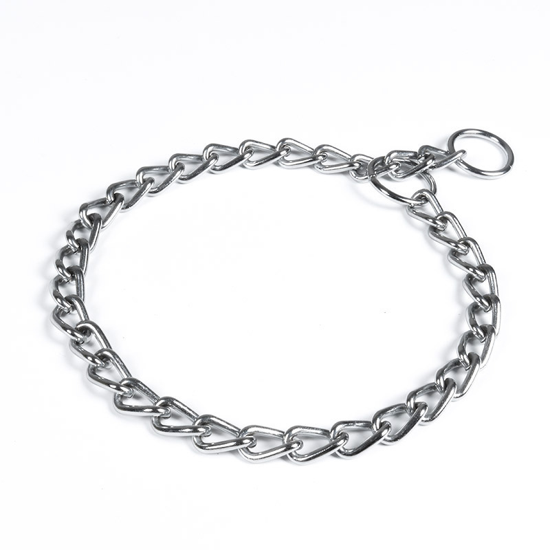 金属製の丈夫な輪状チェーンは、引っ張り癖のある愛犬のトレーニングに効果的で、過度な負荷がかかると自動的に調整される安全設計を採用しています。