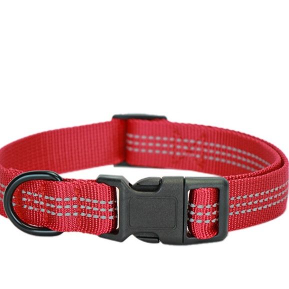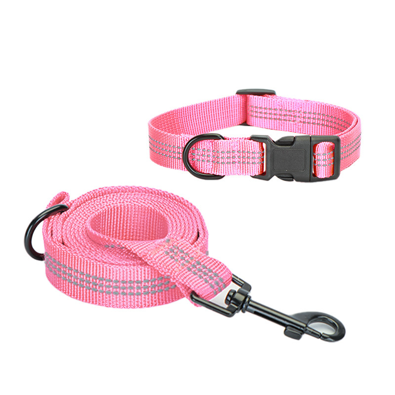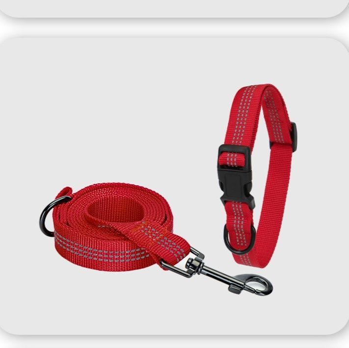 夜間の安全性を高める反射ライン付きの太めナイロン製犬首輪とリードのセット商品です。