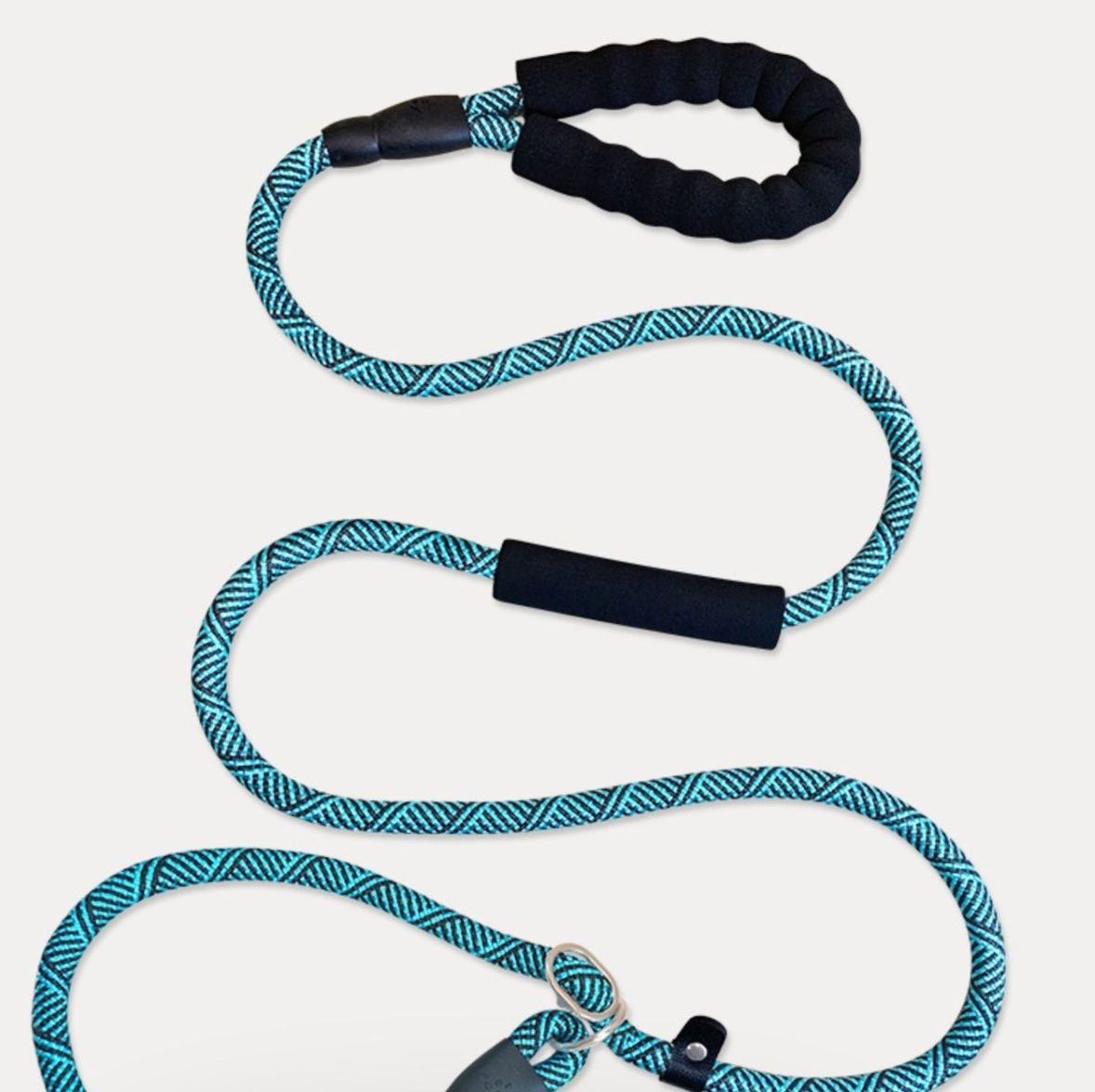 リードは丈夫なロープ素材を使用し、持ち手部分には柔らかいクッション素材を採用しているため長時間のお散歩でも快適です。