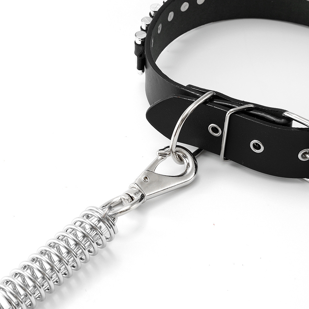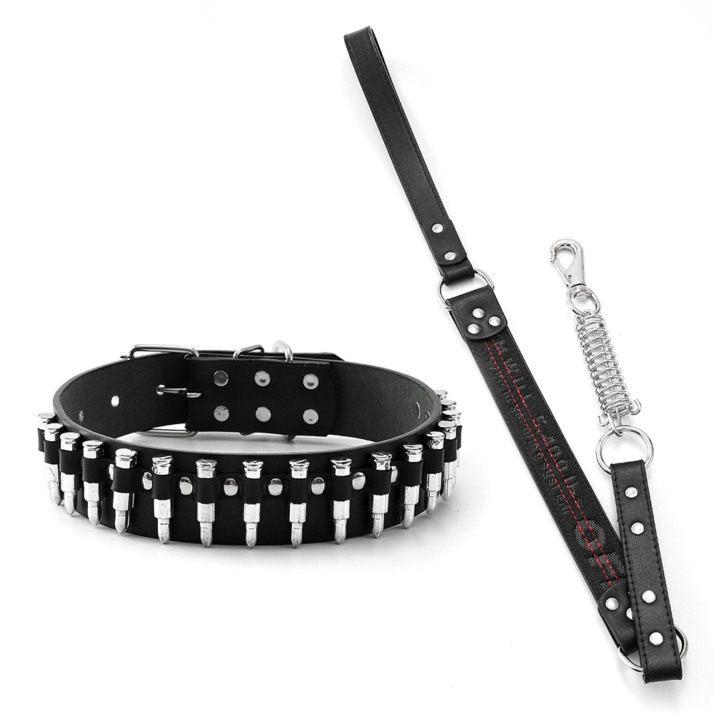 存在感のある装飾が特徴的な太めの犬首輪です。