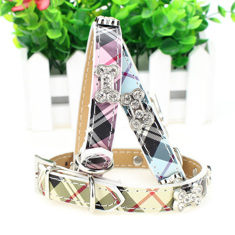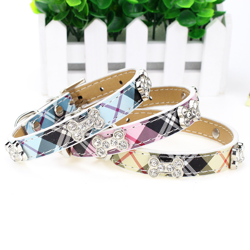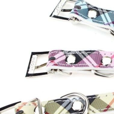 愛らしい小型犬にぴったりな上品なチェック柄の犬首輪です。