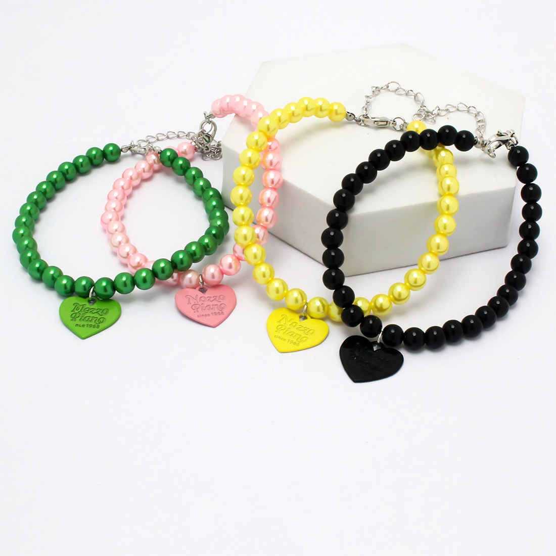 愛らしいハート型のチャームがアクセントとなり、大切な愛犬をより可愛らしく演出します。