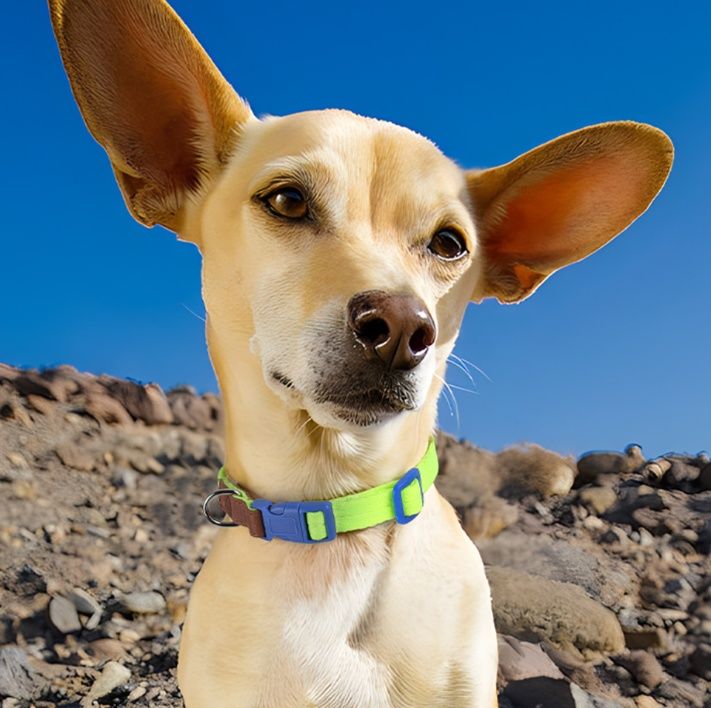 中小型犬に最適な設計で、首輪部分は調節可能なバックルを採用し、愛犬の首周りにぴったりフィットします。
