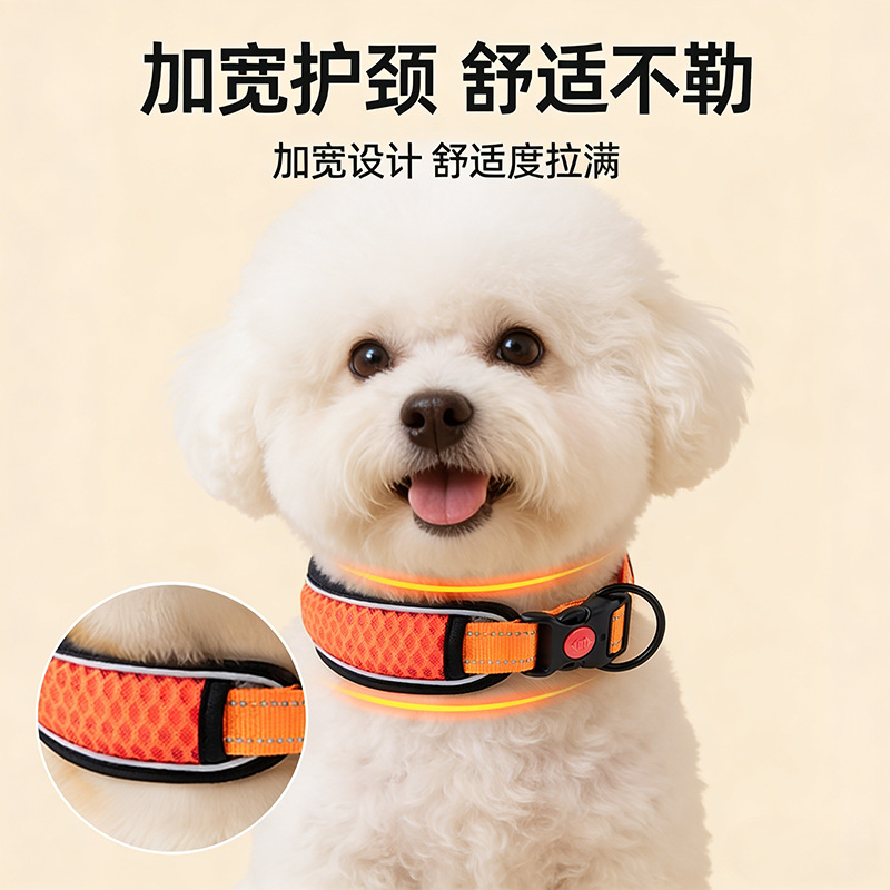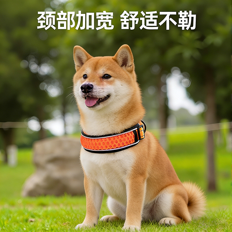 反射素材を使用した幅広デザインで、暗闇でも愛犬の位置をしっかり確認できます。