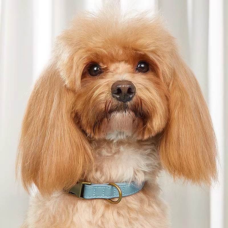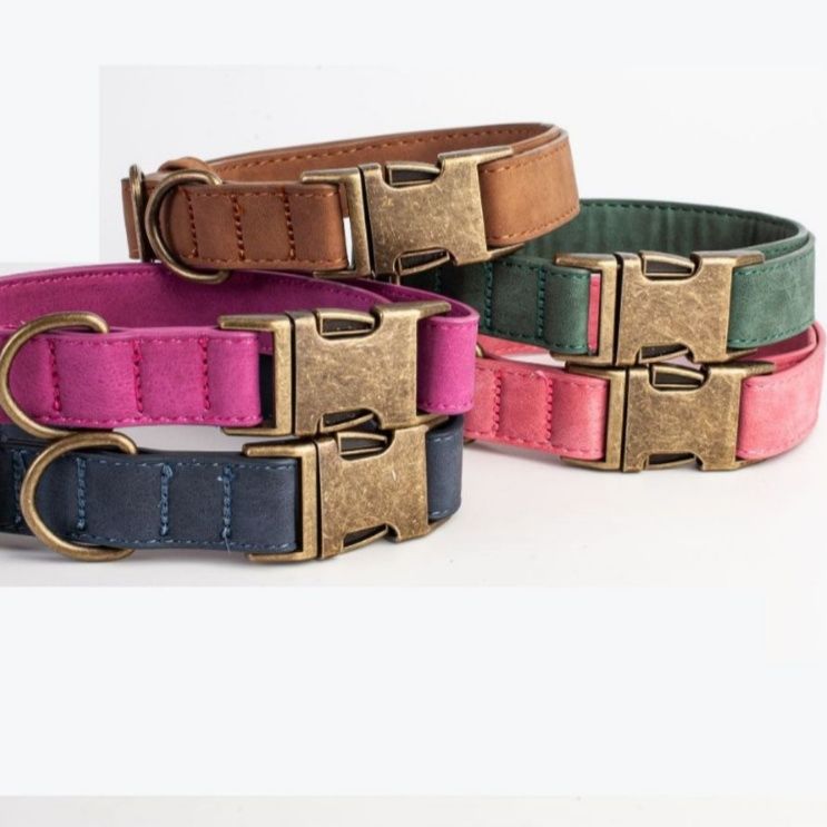 高級感あふれるスエード調の革を使用した犬首輪です。