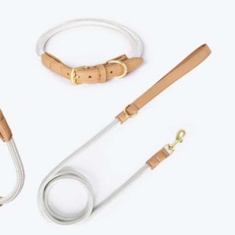 上質な本革レザーと丈夫なロープ素材を組み合わせた高級感あふれる犬首輪とリードセットです。