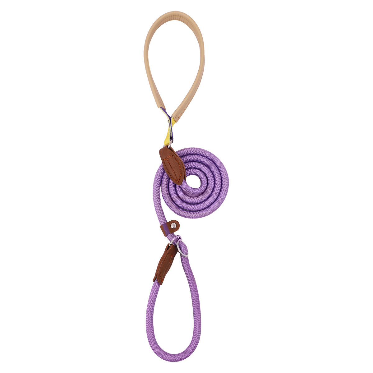 丈夫な編み込みロープ素材に温かみのある本革パーツを組み合わせた犬首輪とリードセットです。