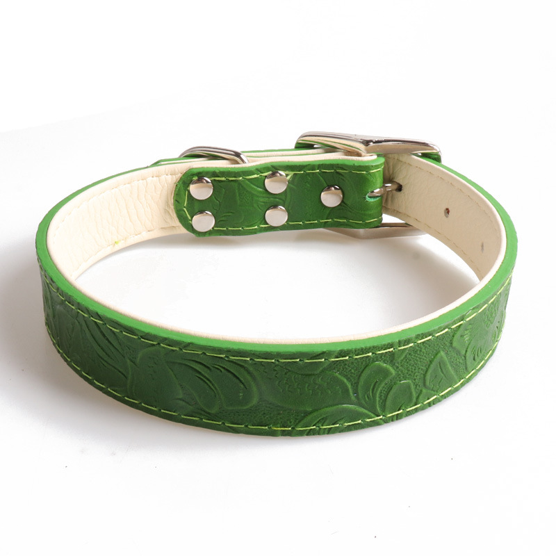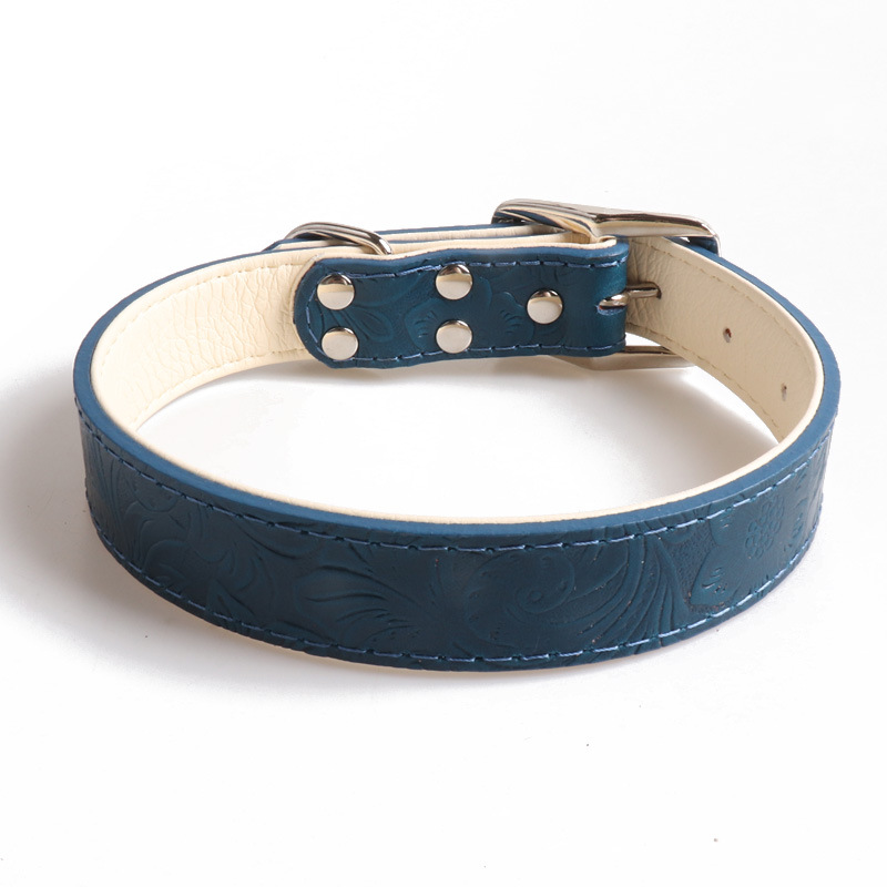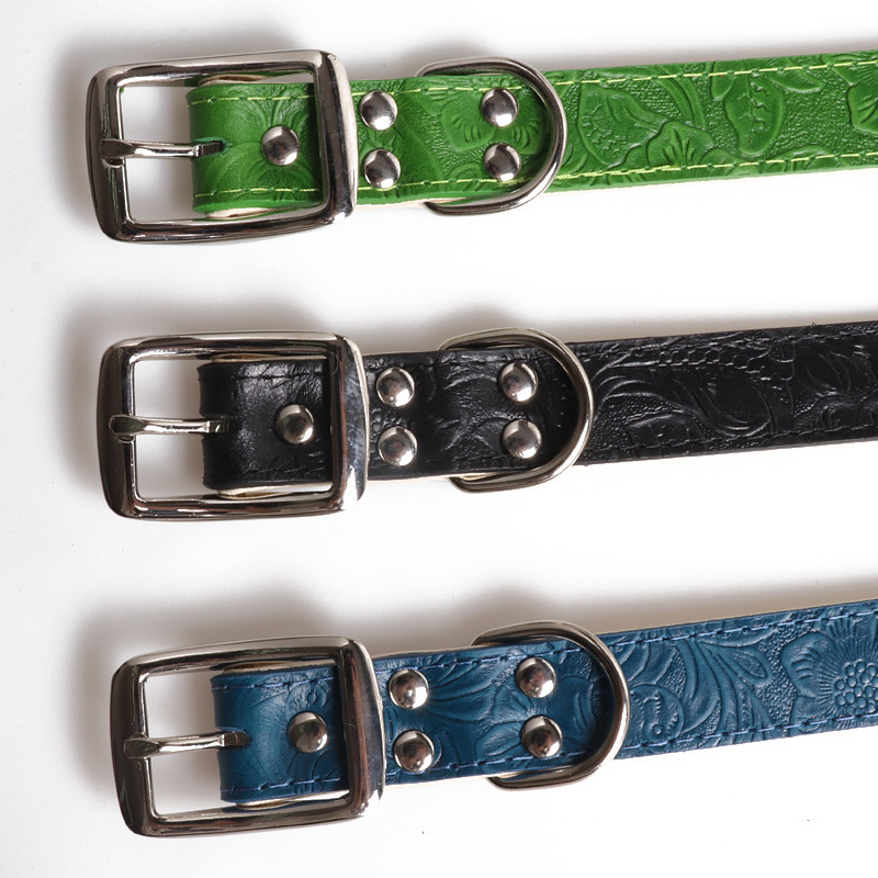上質な革を使用した高級感あふれる犬首輪です。 表面には繊細な型押し模様が施されており、さりげない品格を演出します。 革の内側は柔らかな素材で裏打ちされているため、愛犬の首元に優しくフィットし快適な装着感を実現しました。 金属パーツは丈夫で錆びにくい素材を採用し、サイズ調整も簡単に行えます。 日常のお散歩から特別なお出かけまで幅広くお使いいただける上質な逸品です。