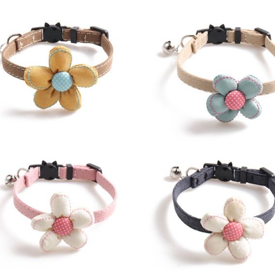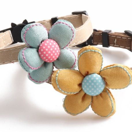 可愛らしい花の飾りが付いた小型犬向けの犬首輪です。