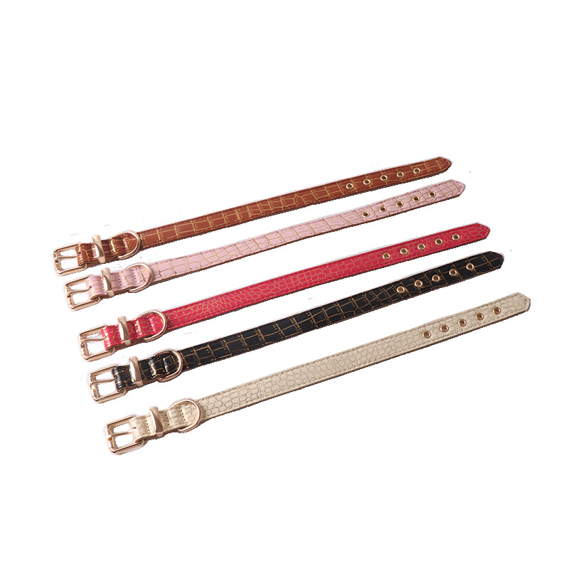 高級感あふれるクロコダイル柄の型押しを施した本革仕様の犬首輪です。
