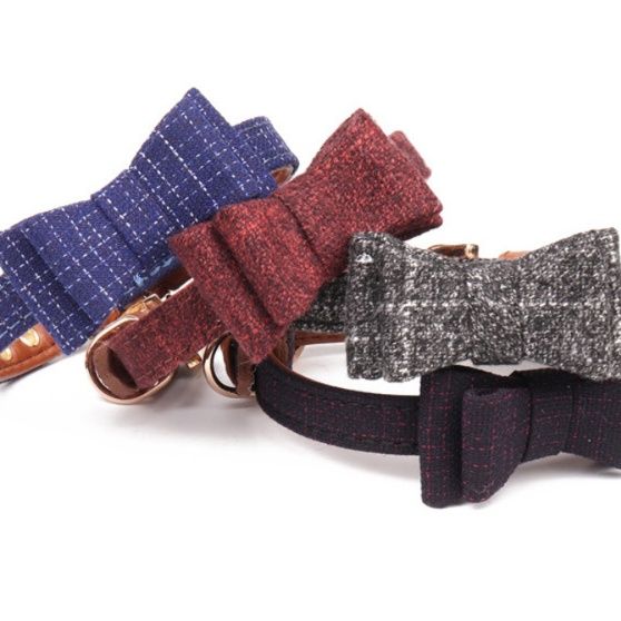 大きな蝶ネクタイが愛らしいおしゃれな犬首輪です。