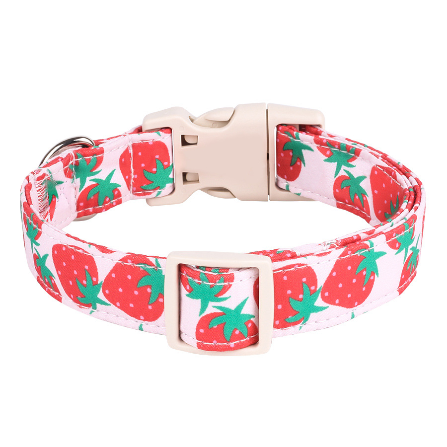 可愛らしい苺の総柄がキュートな小型犬専用の犬首輪です。