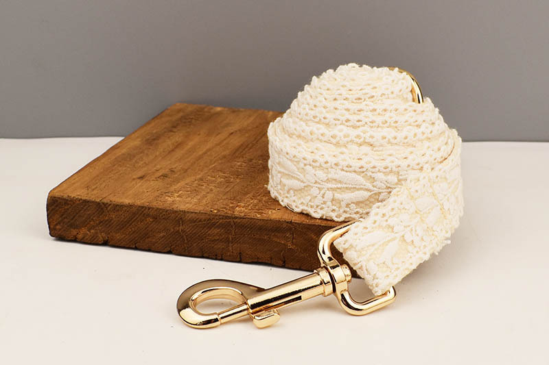 大輪の立体的な花モチーフが華やかさを演出する犬首輪とリードセットです。