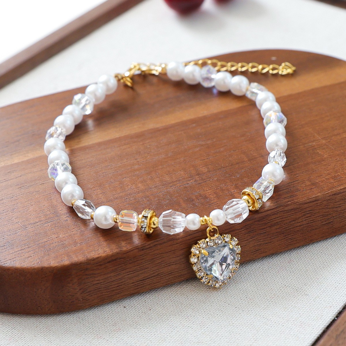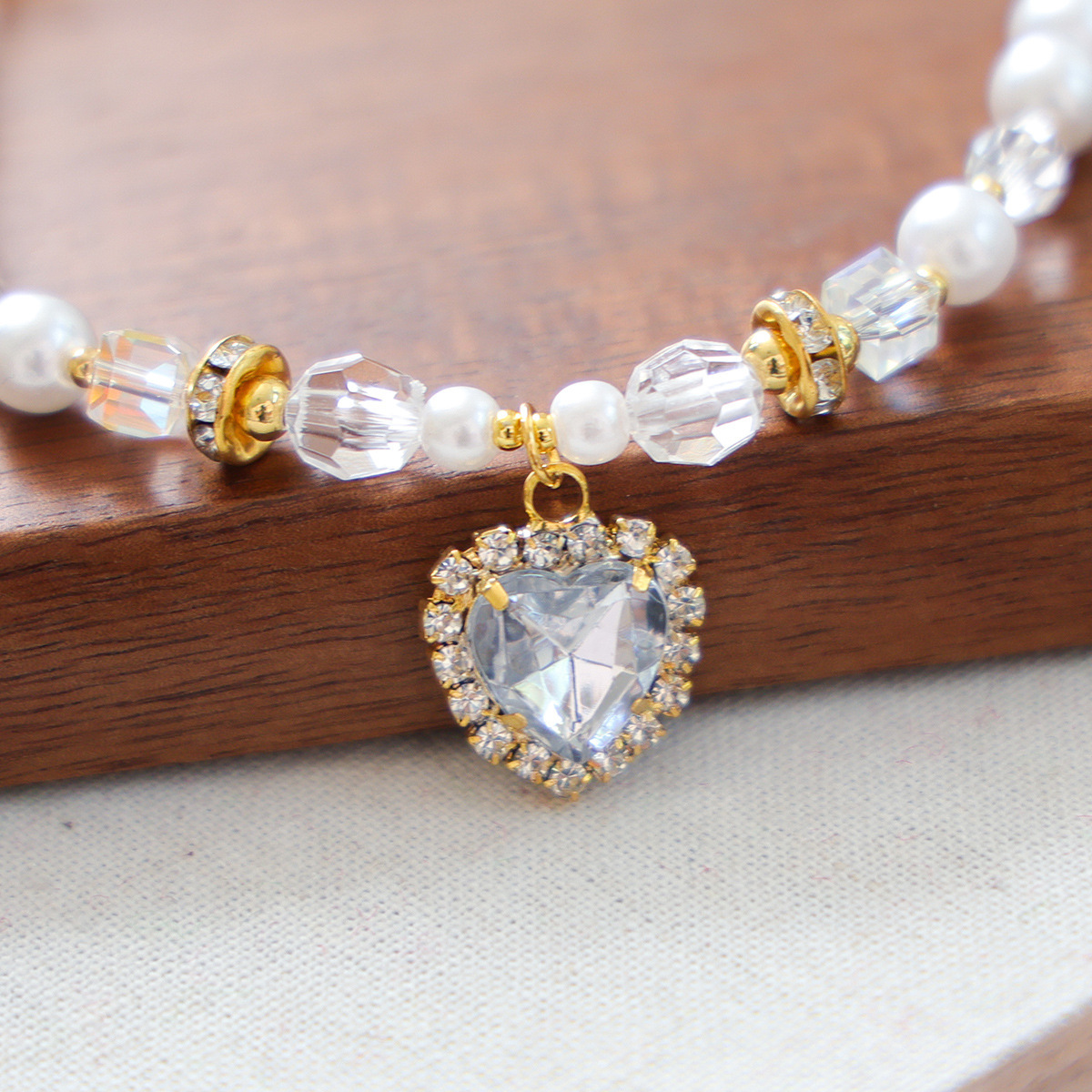 中央には輝くハート型の宝石チャームが揺れ、愛犬を華やかに演出します。